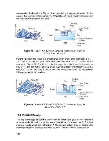 gearset in Figure 14. The tooth contact is larger in profile than the baseline in
