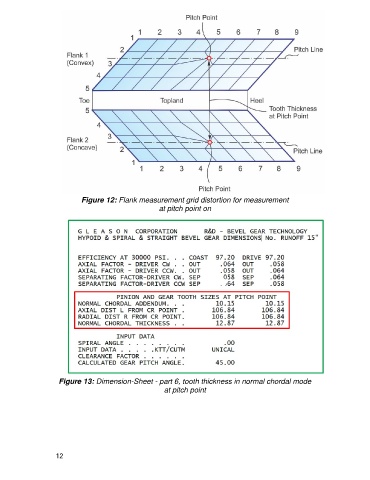 Figure 12: Flank measurement grid distortion for measurement at pitch point on Figure 13: Dimension-Sheet - part 6, tooth thickness in normal chordal mode at pitch point 12