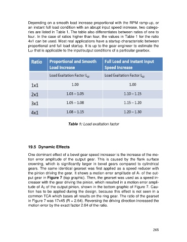 Table 1: Load exaltation factor