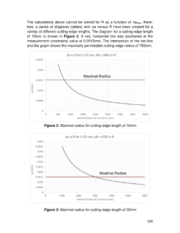 Figure 3: Maximal radius for cutting-edge length of 20mm