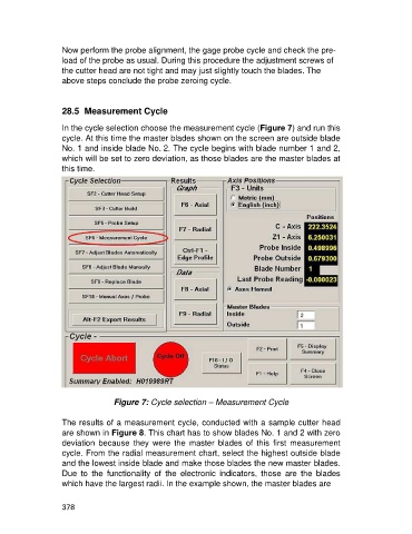 cycle. At this time the master blades shown on the screen are outside blade