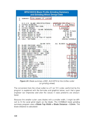 Figure 24: Blade summary JOB2_AUX.BFN for the Uniflex cutter