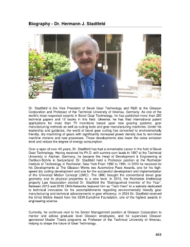 manufacturing and technical advancements in gear efficiency. In 2024 Dr. Stadtfeld received