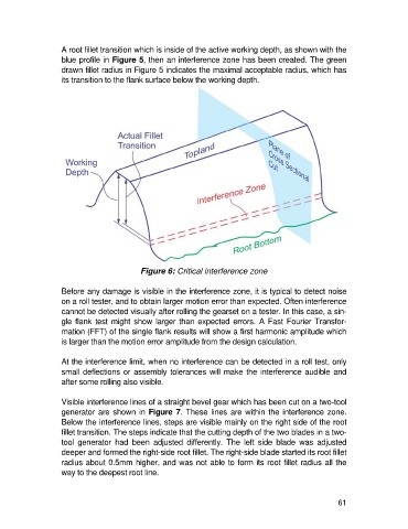 A root fillet transition which is inside of the active working depth, as shown with the
