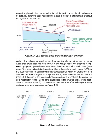 cause the pinion topland corner will not mesh below the green line. In both cases