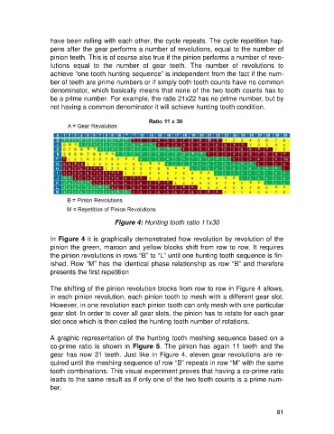 the pinion revolutions in rows “B” to “L” until one hunting tooth sequence is fin-
